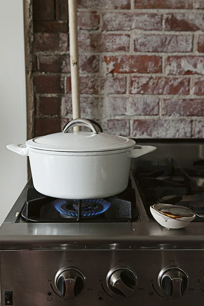 1) Heat 2 tbsp. of grapeseed oil or any sort of neutral cooking oil in a large pot or dutch oven. Sauté the garlic first until fragrant and aromatic, before adding in the ginger and the onions. Sauté until the onions have softened and the ginger has imparted its fragrance.